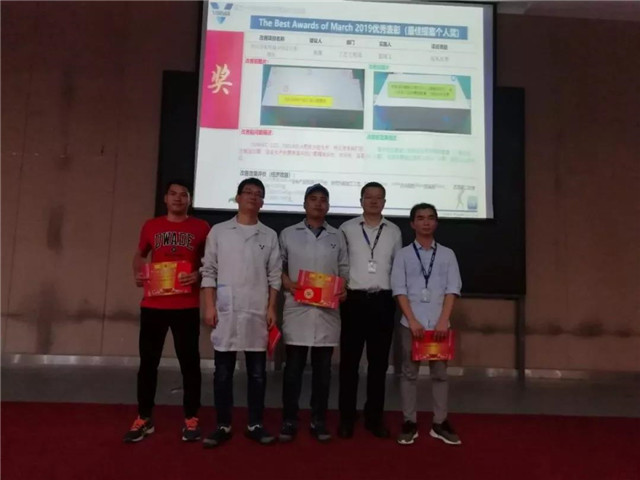 公司为表彰月度优秀员工、创新员工特别设置了奖励颁奖环节,由陈红升先生对公司优秀员工、最佳提案改善员工、伯乐推荐奖得主进行颁奖并合影留恋。