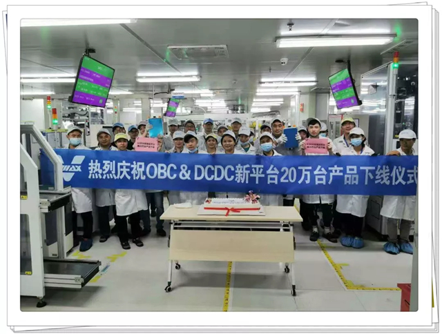 2020年11月7日下午VMAX OBC&DCDC新平台第20万台产品在光明工厂九洲车间顺利下线,公司副总裁兼首席运营官陈总、供应链总监曾总、生产运营总监徐总与九洲全体员工共同见证了这一历史性时刻。
