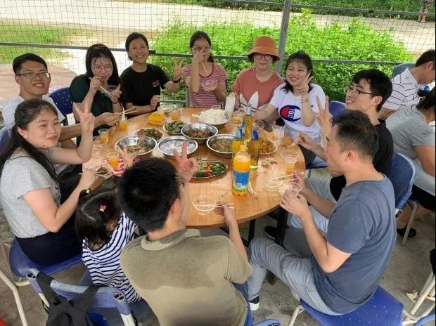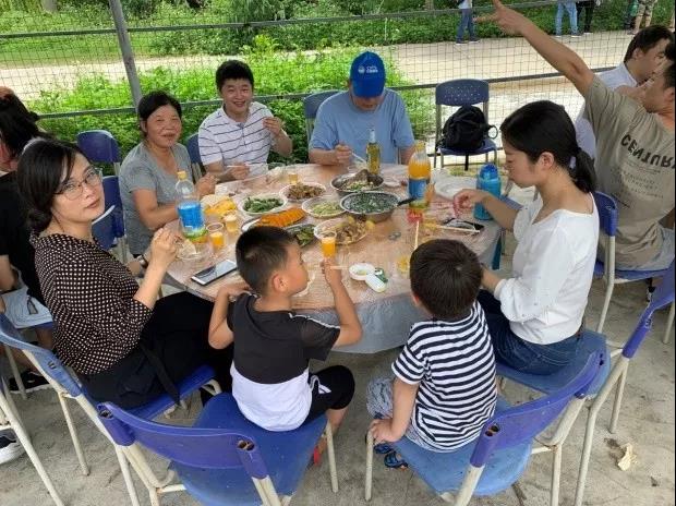 参观完妈祖庙后,我们乘车前往龙印农家乐。在这里,远离了城市的喧闹,大家一起体验制作一顿特别的午餐——柴火饭。野炊分为四组进行,小伙伴们各司其职,分工明确,其乐融融。砍柴生火、洗菜刷锅、切菜掌勺……一个个忙得热火朝天。此刻,袅袅炊烟起,菜香扑鼻来。正所谓男女搭配,干活不累,在大家的辛勤劳动后,一盘盘色香味俱全的家常菜被端上了饭桌。忙碌许久,最幸福的一刻就是大家坐一起,聊着天,吃着美食。